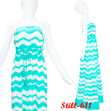 2017海滩度假新款夏季抹胸印花连衣裙雪纺泰国蜜月大摆长裙大码
