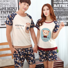 韩国新款夏季情侣睡衣大码睡衣女短袖纯棉质卡通男士套装家居服