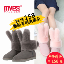 兔子兔耳朵雪地靴冬季女鞋2016新款真皮短靴女加绒保暖短筒靴女潮