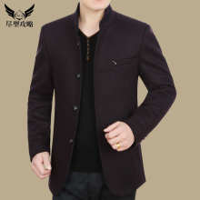 秋冬季中老年男装男士羊毛呢夹克妮呢子中长款商务外套中年爸爸装