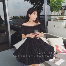 2017夏装新款女夏季学生潮韩版显瘦一字肩裙子心机蕾丝雪纺连衣裙