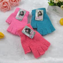 手套女 冬可爱露指半指 纯色兔羊毛保暖加绒毛线手套厂家直销