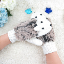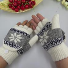 冬季男女士保暖兔羊毛线针织魔术手套 加厚翻盖半指手套厂家直销