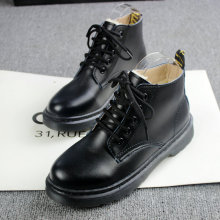 英伦风春秋季新款马丁靴潮女中邦短靴牛筋平跟厚底前系带大头皮鞋