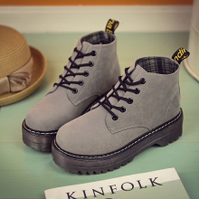 2017春秋休闲磨砂皮厚底短靴女英伦复古圆头学生系带防水台马丁靴
