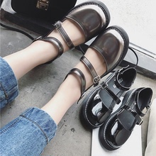 日系复古镂空一字扣女生小皮鞋女英伦学院风原宿厚底单鞋学生鞋潮