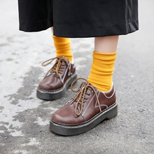 春秋女鞋英伦风中跟小皮鞋系带圆头复古厚底单鞋娃娃鞋日系松糕鞋
