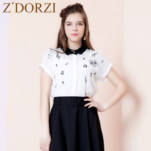 zdorzi卓多姿2017夏季新款音符印花POLO领雪纺衬衣女短袖732167