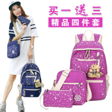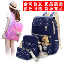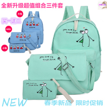 原宿风双肩包女韩版学院帆布书包高中学生女校园简约淑女四件套潮