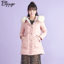 冰洁韩版连帽修身学院风女式中长款羽绒服外套J1301086