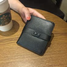 欧美大牌2017新款短款钱包女搭扣头层牛皮夹多卡位卡包零钱夹