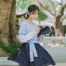 鹿韵记原创设计改良汉服女绣花改良坦领套装短裙汉元素日常春夏款