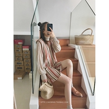 AKMENG 韩国NEW STAR春季新款套头条纹针织马甲女中长款毛衣外套