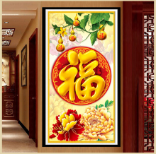 新款十字绣五福临门葫芦 福字玄关竖版十字绣福禄牡丹图客厅大幅