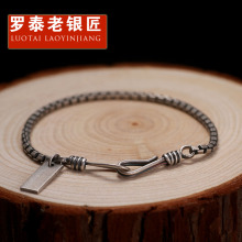 罗泰老银匠手工定制 刻字手链 925银男女情侣手链 韩版时尚银手链