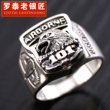 罗泰老银匠s925银 复古泰银戒指101空降师男士霸气个性食指指环