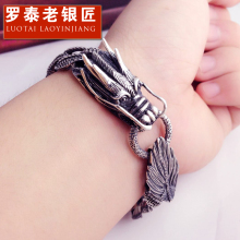 罗泰老银匠925银饰品 复古泰银个性霸气男士龙手链粗 潮男礼物