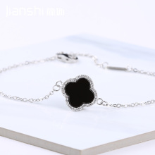 简饰925银手链女甜美日韩版学生闺蜜简约手饰黑色玛瑙四叶草手链
