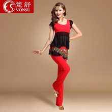 梵舒 春夏新款肚皮舞套装 短袖演出服装网纱舞蹈练习练功服表演服