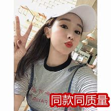 林珊珊 夏季韩版宽松圆领字母细条纹t恤女短袖百搭打底体恤上衣潮