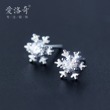 爱洛奇 925银耳钉女甜美镶钻雪花耳钉可爱小耳钉圣诞耳饰品