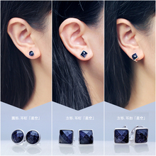 925银耳钉女男士情侣韩版气质紫金沙黑色玛瑙耳钉方形耳饰品E307