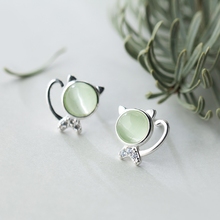 爱洛奇 925银耳钉女可爱合成绿玛瑙猫咪耳钉韩版小猫小动物耳饰品