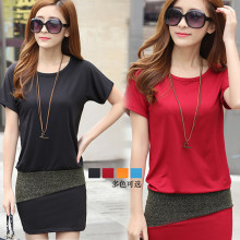 2016夏季女装新款韩版大码休闲中长款修身显瘦短袖包臀连衣裙女夏