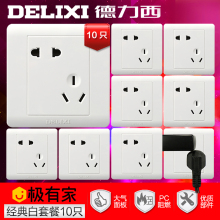 德力西墙壁开关面板 七孔插座 正品二二三插四插多孔电源面板插座