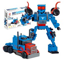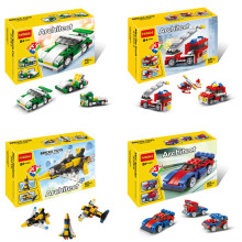 包邮儿童益智玩具 拼装积木塑料拼插 三变拼装汽车摩托车消防车