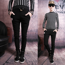 秋季新款潮男休闲裤 韩版修身松紧小脚裤发型师紧身铅笔裤夜店男