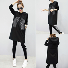 欧洲站2017春装新款中长款连帽卫衣套装镶钻宽松休闲运动两件套女