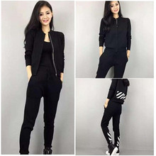 欧洲站2016秋装新款运动休闲套装长袖长裤大码显瘦欧货两件套女潮