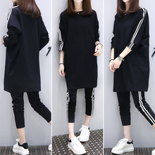 欧洲站2017春款条纹边中长款宽松卫衣打底裤休闲运动两件套装女潮