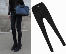 外贸原单秋冬厚款高腰弹力纯黑牛仔裤修身小脚裤铅笔裤女大码加绒