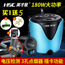 英才星带开关车载充电器一拖三点烟器 汽车用一拖二USB杯架式车充