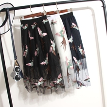 2017夏新款凤凰刺绣欧网纱半身裙仙女裙高腰中长裙蓬蓬纱裙A字裙