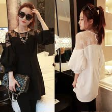 2016春秋季新款毛衣女学生韩版宽松针织衫女套头中长款蕾丝打底衫