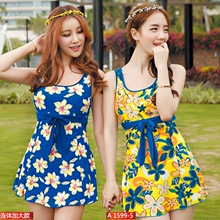 妈妈泳衣加肥加大码保守连体裙式平角游泳衣女遮肚显瘦泡温泉泳装