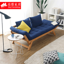 慕艺 实木日式可折叠两用沙发床2米小户型多功能懒人布艺沙发床