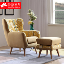 慕艺单人沙发椅电脑椅布艺北欧实木高靠背懒人沙发椅子美式老虎椅
