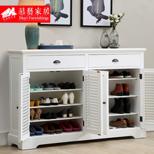 慕艺 实木鞋柜三门多层大容量美式欧式收纳柜门厅柜隔断柜玄关柜