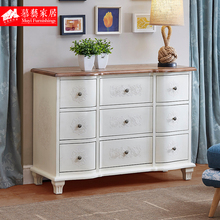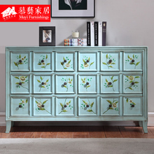慕艺 新古典美式九斗柜复古彩绘实木储物柜收纳装饰柜子玄关柜