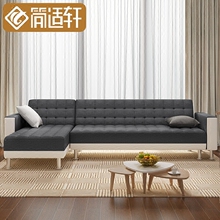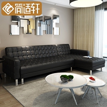简适轩小户型客厅转角沙发组合功能皮艺沙发床实木折叠布艺沙发床