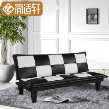 简适轩时尚格子皮艺沙发 小户型单人双人实木可折叠沙发床JH159