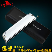 正品天鹅16孔成人专业演奏SW1664 宽音域16孔64音半音阶C调 口琴
