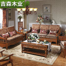 吉森木业 美式复古雪橇沙发组合欧式古典全实木沙发 美式乡村家具