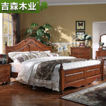 吉森木业 美式乡村家具 复古雕花高箱全实木床欧式1.5米1.8美式床