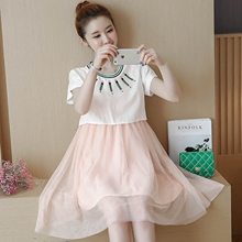 孕妇装夏装连衣裙2017新款短袖欧根纱蕾丝裙子夏季宽松中长款上衣