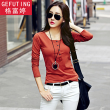 2016秋装新款修身V领打底衫韩版女装外穿上衣体恤衫纯棉长袖女t恤
